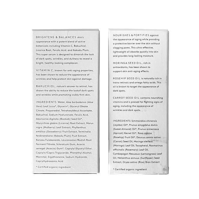 • KEY INGREDIENTS: Potent botanicals known for visible results: Bakuchiol for a radiant look and firm feel, Vitamin C for an even tone, Argan Oil for a youthful glow, and Pomegranate Seed Oil for deep nourishment.