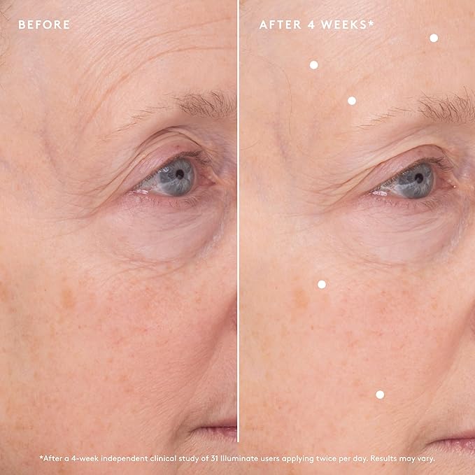 • CLINICAL RESULTS: In an Independent Clinical Study with Illuminate users, 94% of users showed a decrease in the appearance of fine lines & wrinkles, 84% improved visible skin radiance, and 100% showed an increase in hydration.*