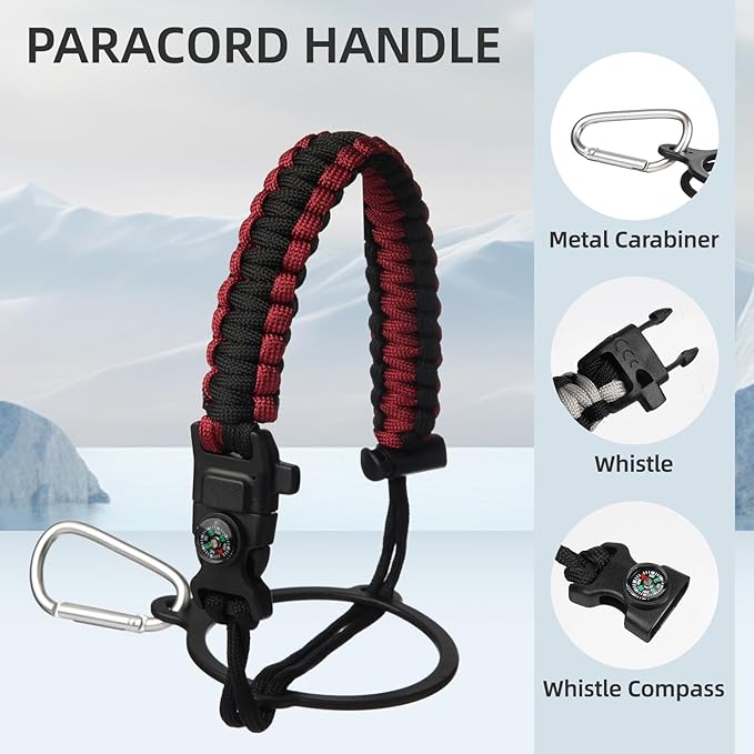 • The large capacity gallon water jug comes in various sizes, including 50 oz, 64 oz, 87 oz, and 128 oz, with a range of colors to choose from according to your need. All sizes of bottles equip with a paracord handle and a pouch for easy carrying