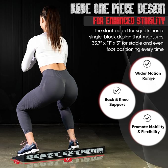• Wider Is Always Better: Level up your workout with a wider slant board for squats (35 3/4" x 10 3/4'' x 2 3/4'') and perform more advanced exercises like the sumo squat with improved stability and balance.