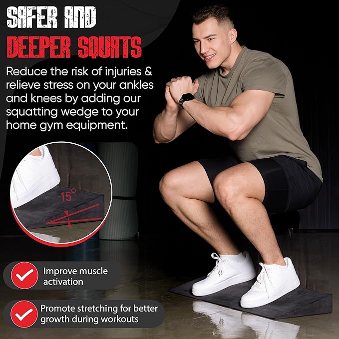 • The Ideal Angle For Any Exercise: Our squat heel wedge's 15-degree angle is perfect for going beyond the standard squat. Achieve proper muscle activation, and take your stretching sessions to the next level.
