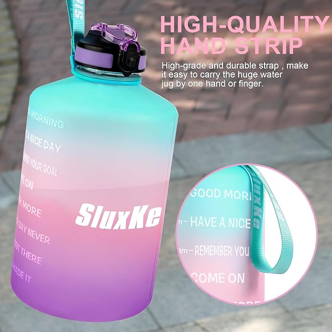 • 🍋HEALTHY WATER BOTTLE: Sluxke water bottle jug is made of eco-friendly PETG plastic, which is not only 100% BPA free, non-toxic and no harmful substances but also lightweight and sturdy! the 1 gallon/128oz capacity water jug is thick, durable and reusable, a healthy water storage containers for you and your family!