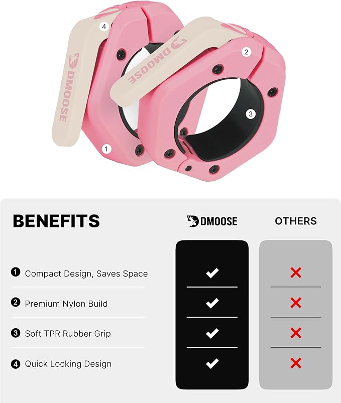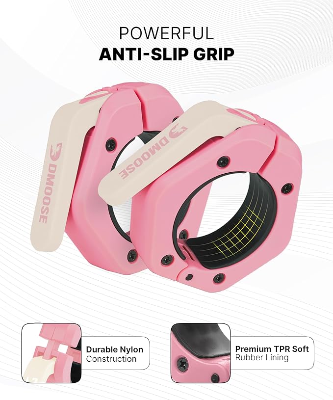 DMoose Fitness Barbell Clips 2 Inch (Pair) - Quick Release Olympic Barbell Clamps & Collars with Anti Slip TRP Grip for Secure Weightlifting and Powerlifting - Weight Clips for Bars at Home or Gym