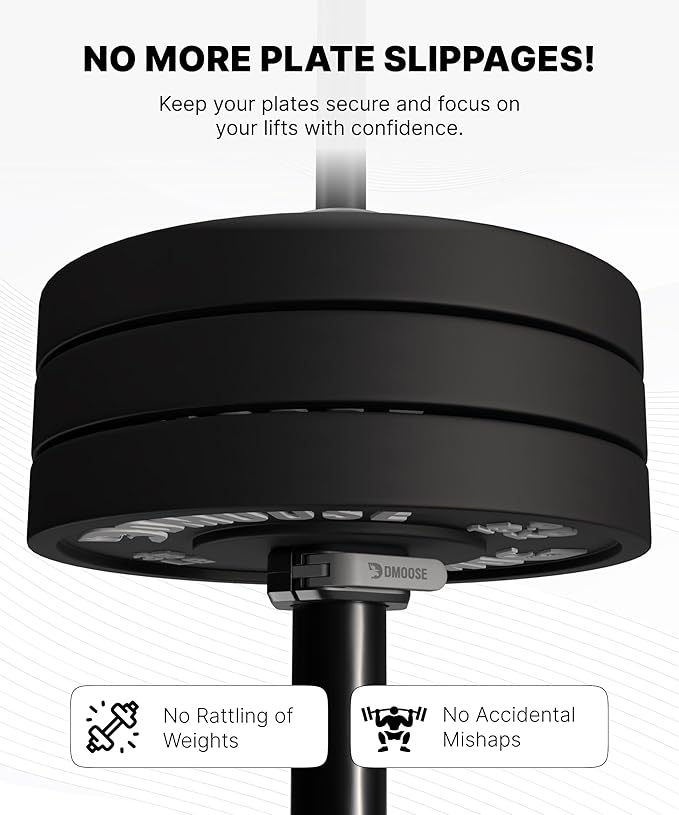 • SECURE HOLD FOR RELIABLE PERFORMANCE: The advanced locking mechanism of weight bar clamps guarantees a rock-solid hold ensuring that plates stay firmly in place and won’t shift or slip during lifts. Train with confidence knowing your weights are securely locked in place.