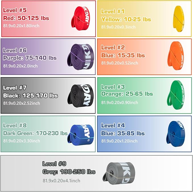 • [Solid and Hard-wearing]--Our heavy duty resistance bands are crafted from natural latex material, ensuring they are non-toxic, odorless, anti-slip, and resistant to curling. With our pull-up assistance bands set, you can be confident they won't break, providing safety and multifunctionality. Whether used with gym equipment, strength training gear, workout bands, boxing equipment, or stretching straps, our product excels in all applications.