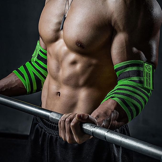 TAVIEW Elbow Wraps for Weightlifting (1 Pair), 47" Elastic Elbow Support & Compression Powerlifting, Fitness, Cross Training & Gym Workout - Elbow Straps for Weight Lifting