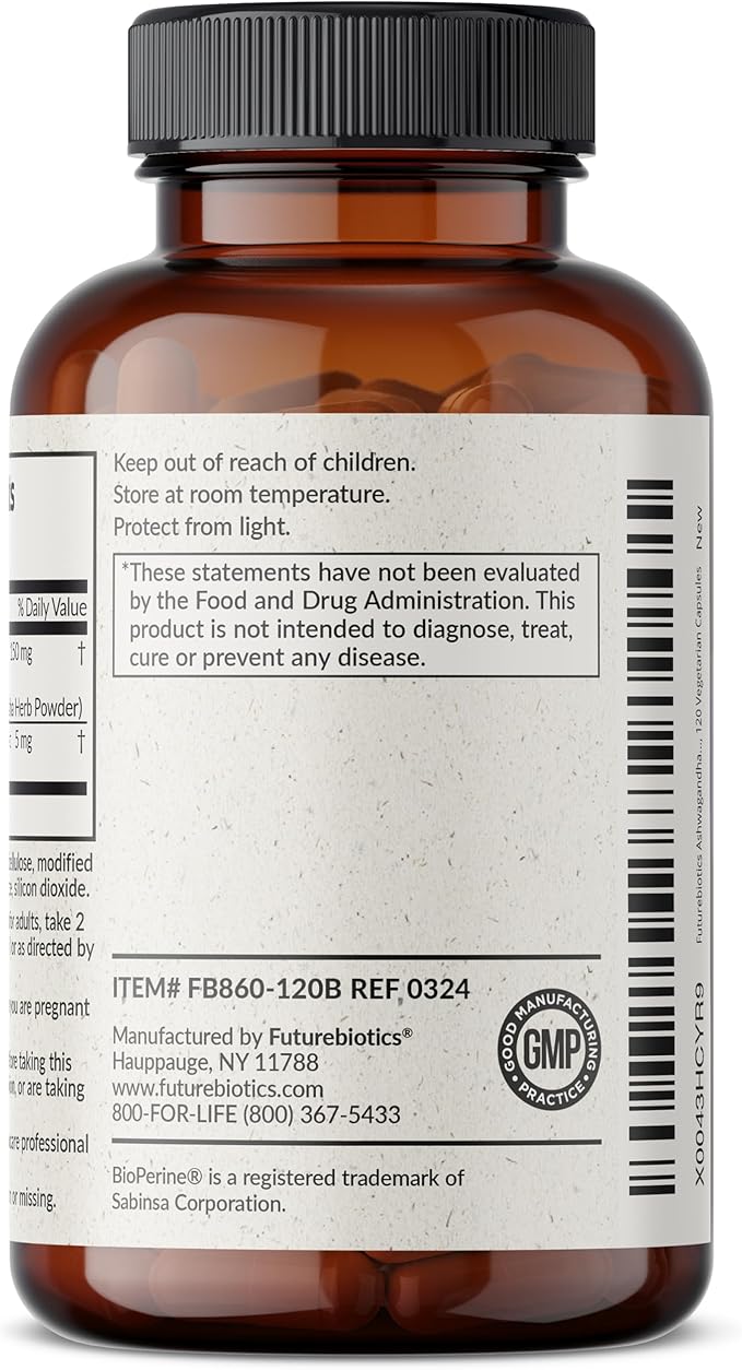 • Superior Quality Formula: Carefully manufactured at our cGMP Facility that is located in New York. Each and every Futurebiotics product is put through a rigorous process to ensure purity, potency and quality. Futurebiotics Ashwagandha is in-house tested and free of GMOs, Gluten and Soy.
