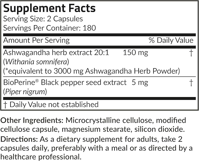 • Herbal Stress Support: Ashwagandha Extra Strength helps to support a healthy stress response, maintain healthy cortisol levels, support a positive mood, and memory.* Futurebiotics Ashwagandha additionally includes BioPerine, which has been clinically shown to enhance nutrient absorption.*
