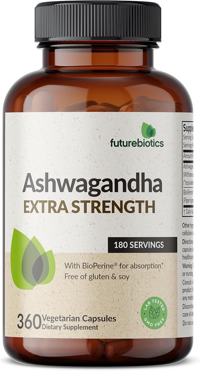 Futurebiotics Ashwagandha Extra Strength Stress & Mood Support with BioPerine - Non GMO Formula, 360 Vegetarian Capsules