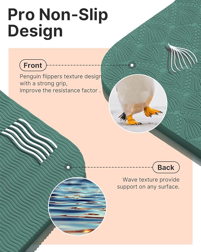• Non-Slip Yoga Mats: Surface flippers webbing design, inspired by the penguin's flippers, improve the resistance factor, and sweat without slipping, strong and durable to prevent ripping suitable for yoga, pilates, weight training, and other floor exercises. Alignment Marks Yoga Mats are more helpful for beginners.