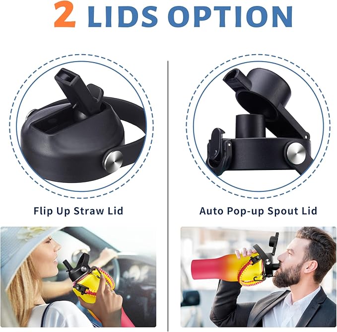 • LEAK-PROOF STRAW LID & AUTO SPOUT LID: This stainless steel tumbler thermal with straw and chug lid, both BPA-free, leak-proof and one-hand conctorl design, great car must have things!