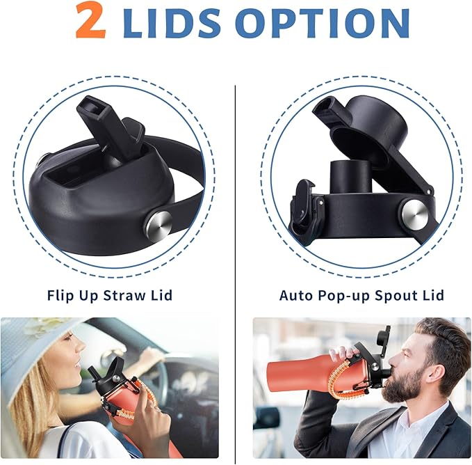 • LEAK-PROOF STRAW LID & AUTO SPOUT LID: This stainless steel water tumbler cup with straw and chug lid, both BPA-free, leak-proof and one-hand conctorl design, great car must have things!