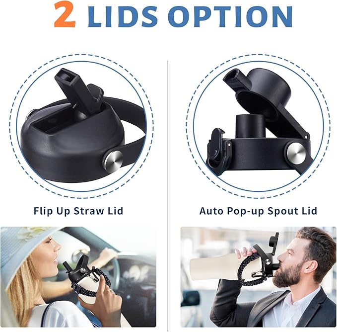 • LEAK-PROOF STRAW LID & AUTO SPOUT LID: This stainless steel travel coffee mug with straw and chug lid, both BPA-free, leak-proof and one-hand conctorl design, great car water bottle must have things!