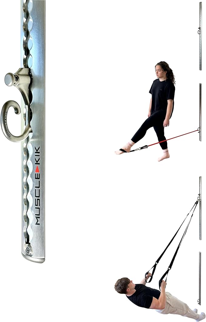 • SPACE-SAVING ELEGANCE: The MUSCLE KIK Adjustable Workout Wall Anchor System boasts a clean, minimalist design, meticulously crafted from aircraft aluminium and stainless steel in a sleek brushed finish. Transform any room into a modern home gym without sacrificing valuable floor space.