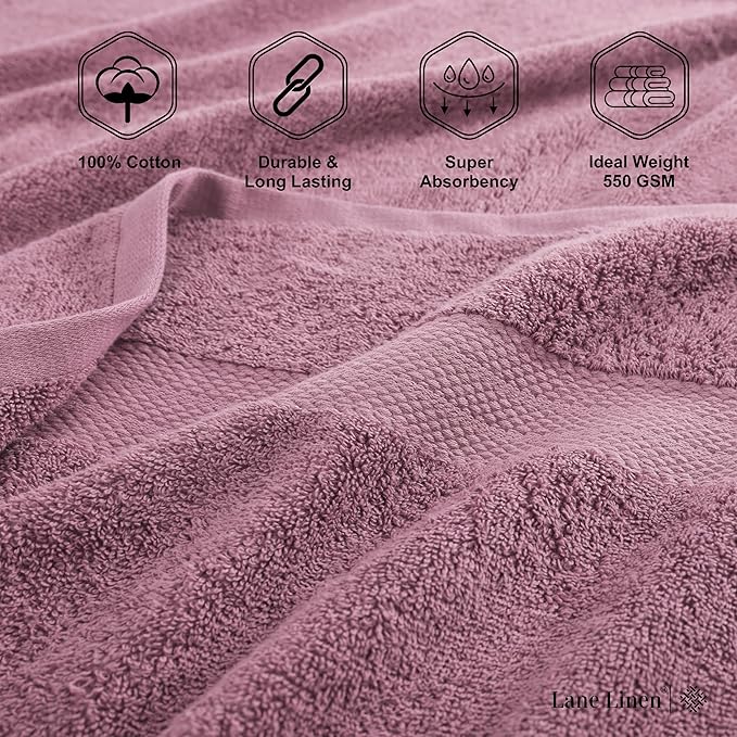 LANE LINEN 100% Cotton Large Bath Towels Set of 4 (28"x54") - Ring Spun Mercerized Cotton Bathroom Towel 4 Pack - Quick Dry, Soft & Absorbent Large Towels Set - Oeko Tex Certified - Wishful Mauve