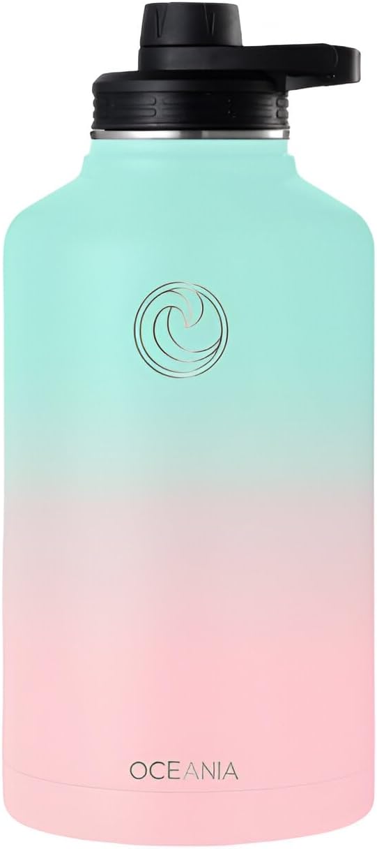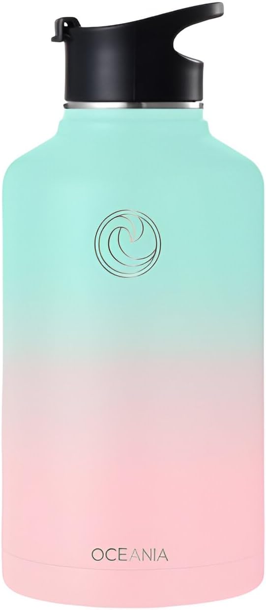Oceania Flask 64oz Stainless Steel Water Bottle | Modern, Leakproof, Hydro BPA-Free, Insulated Water Bottle with 3 Lids, 3 Straws & 2 Straw Cleaning Brushes | Simple Camping & Hiking Water Bottles
