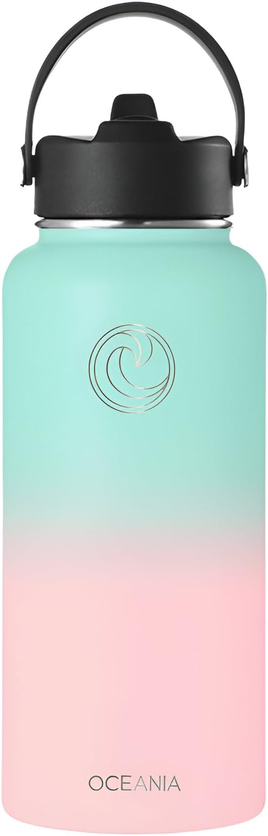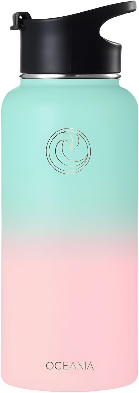 Oceania Flask 32oz Stainless Steel Water Bottle | Modern, Leakproof, Hydro BPA-Free, Insulated Water Bottle with 3 Lids, 3 Straws & 2 Straw Cleaning Brushes | Simple Camping & Hiking Water Bottles