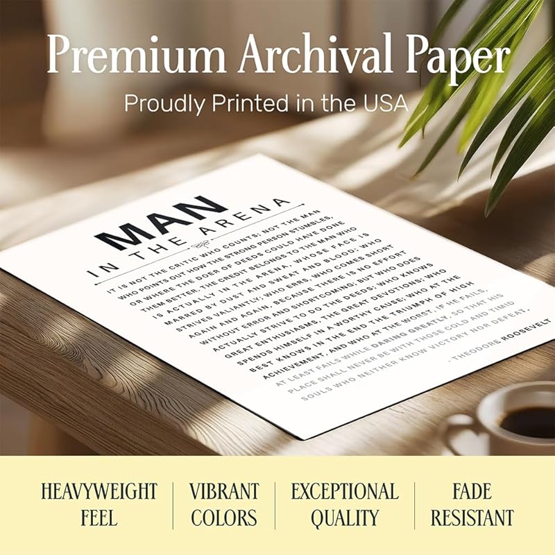 Man in the Arena Quote Poster FRAMED - 8x10 Motivational Inspirational Teddy Roosevelt Daring Greatly Wall Art Decor - Unique Gift for Men, Boys, Teens, Entrepreneur - For Office, Living Room, Bedroom