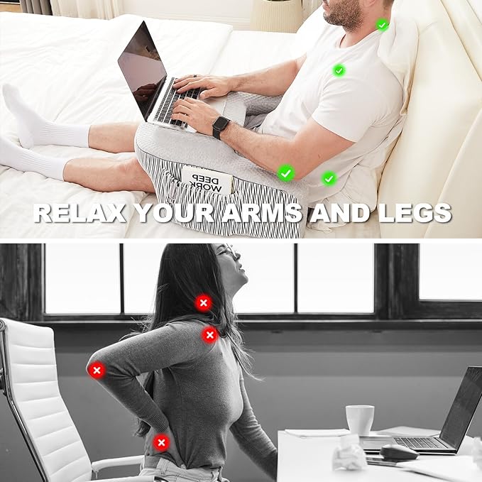 • Leg Support: The Soft Lap Desk Pillow provides better support for the tabletop by extending the platform attachment layer at the bottom position. Adjustable thickness. Whether you use it for gaming, reading or lounging, this pillow is a trusted and long-lasting companion.