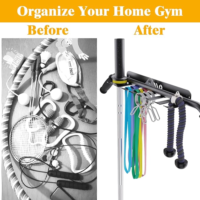 • Versatile Design: This rack is designed for ultimate multifunctionality. Whether it's resistance bands, jump ropes, yoga mats, or suspension straps, the VAIIO barbell rack provides dedicated space for each piece of equipment, helping you keep your home gym tidy and organized.