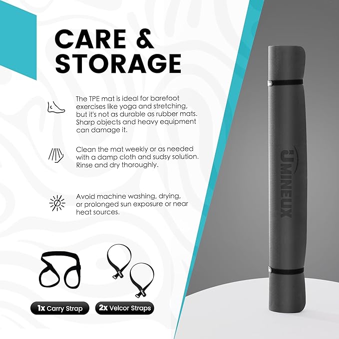 • Product Care Instructions : 1. Hand wash only 2. Wipe clean with damp cloth, unroll, and air dry 3. Store out of direct sunlight 4. Designed for barefoot exercise. Your shoes or your pets' paws may tear the mat. 1. Hand wash only 2. Wipe clean with damp cloth, unroll, and air dry 3. Store out of direct sunlight 4. Designed for barefoot exercise. Your shoes or your pets' paws may tear… See more