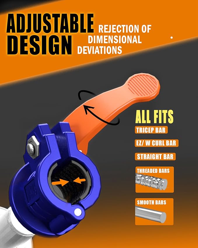 • KEEP THE WEIGHT: Bar clips piston handle, refuse to be too loose or too tight, turn the handle to adjust the size, suitable for 1inch (23mm, 24mm, 25mm), 27mm, 28mm or 30mm Threaded&straight barbell bar. Equipped with TPR inserts, anti-slip texture inside, double protection bursts out a strong grip, load-bearing 400lb+, non-slip, safety lock weight.