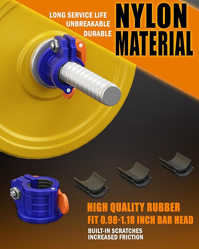 • HIGH-END QUALITY: heavy-duty hard nylon + TPR soft rubber, the complementary combination of soft and hard, lifting clips for bars the nylon outer body is as hard as stone, resistant to falling, wear-resistant, the special rapid rebound of TPR soft rubber can withstand strong pressure and is not easy to deform,Commercial-grade quality to ensure your sports safety