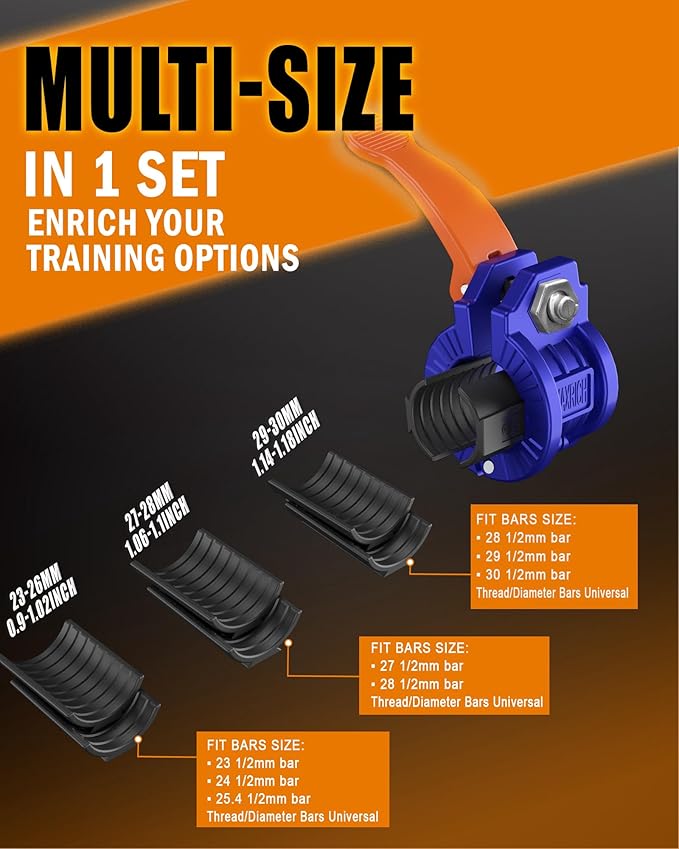 • UNIQUE CONFIGURATION: Say goodbye to a single size, the innovative design of MAXRICH barbell clamps is equipped with multi-size inserts, which can be easily installed or removed, and only 1 barbell clamp can be used for all sizes of barbell bars within 23-30mm. No more worrying about size
