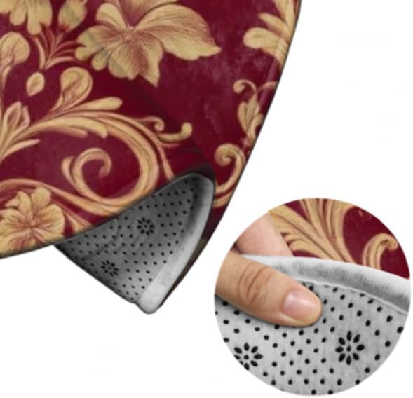 Soft Round Yoga Carpet, Large Home Decor Mat, Non-Slip Machine Washable Kitchen Office Circle Rug Compatible with Flower Maroon Gold Floral Classy Burgundy Antique