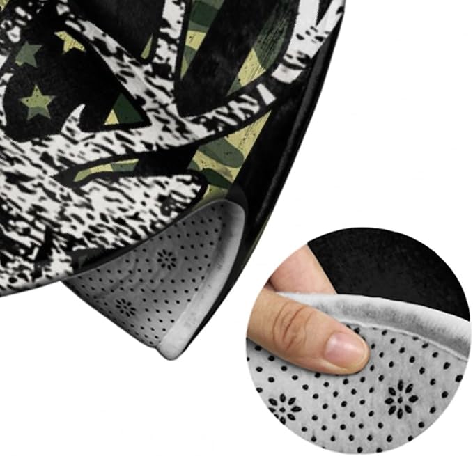 Large Home Decor Mat, Soft Round Yoga Carpet, Non-Slip Machine Washable Kitchen Office Circle Rug Compatible with Deer Camo Camouflage American Flag Hunting Black