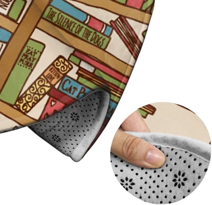 Large Home Decor Mat, Soft Round Yoga Carpet, Non-Slip Machine Washable Home Office Circle Rug Compatible with Sleeping Cat Library Bookshelf