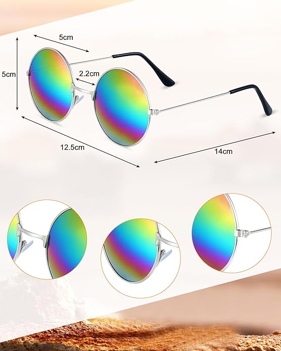 • Hippie Style Sunglasses: this hippie glasses are approx. 4.92 inches in diameter, a suitable size for adults, teens, and even kids, easy and comfortable to wear, cool and very attractive accessory for you to wear