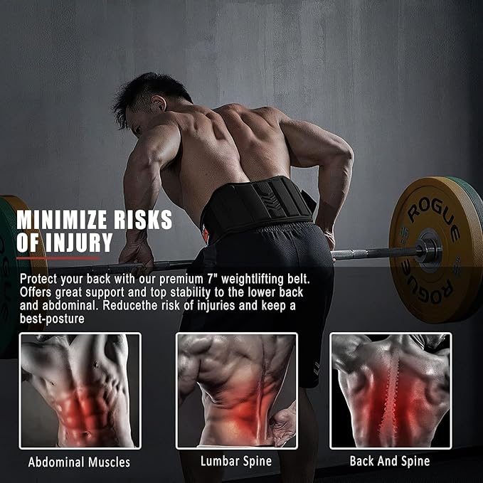 • ✅ COMFORTABLE LUMBAR & BACK SUPPORT: Protect your back with our premium 7” nylon weightlifting belt.Protect your back with our premium 6” nylon weightlifting belt. Our weight belt offers a reinforced back area with a full 4” wide Velcro strap for a perfect, secure fit. Our back belt offers great support and top stability to the lower back and abdominal. It is a must have for heavy squats, deadlifts, rows, and more!