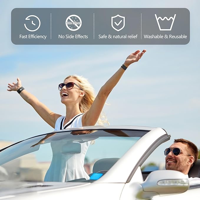 • 【 Effective Nausea Relief 】 Motion Sickness Bands great for reducing morning sickness, sea sickness, car sickness, aircraft sickness and any other travel sickness. For effective relief of all forms of travel and motion sickness, this bands provides a natural choice without causing drowsiness or other side effects.