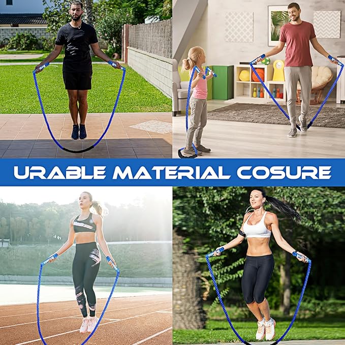 • Multi-Functional Gravity Jump Rope:Weighted Jump Rope for Women and Men Gravity jump rope can not only be used for strengthening muscle strength, improving body flexibility, increasing endurance, and quickly burning calories through aerobic jump rope exercises, but also can be used as a battle rope, tug-of-war rope, interactive game between couples, parents and children, etc. It is an essential sports equipment for family, colleagues, and couples to interact. For a better life, start jumping with a weighted jump rope now