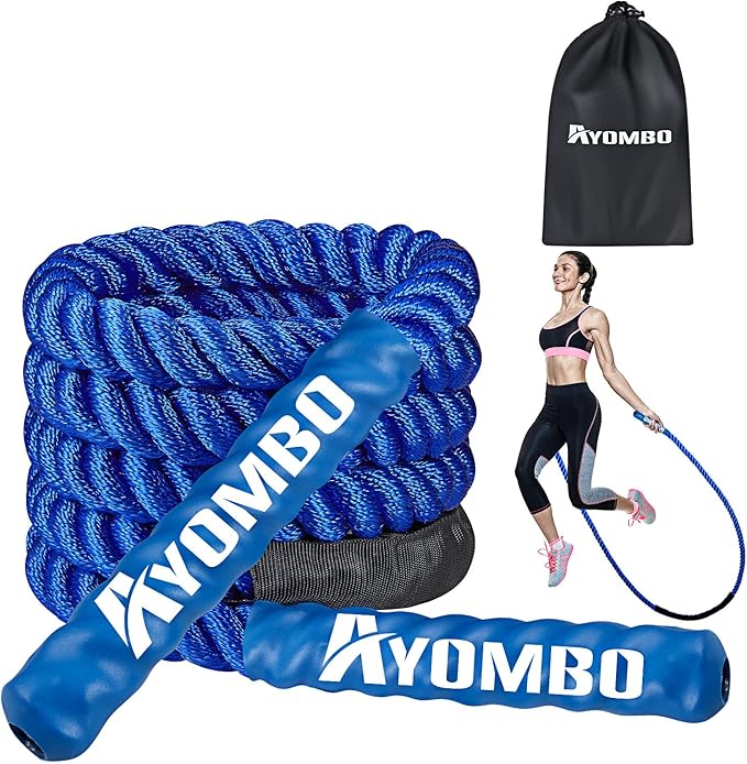 • Strong and Durable Jump Rope:Our weighted jump rope using higher quality polyolefin heat shrinkable material,Features high tensile strength to prevent breakage.Has upgraded anti-slip Ayombo handles to reduce hand abrasion and prevent wrist sprains Humanized design.Add Jump rope wear-protective cover for added durability and extended lifespan, ensuring both style and robust wear resistance,Has a lifespan that is 10 times longer than a regular jump rope