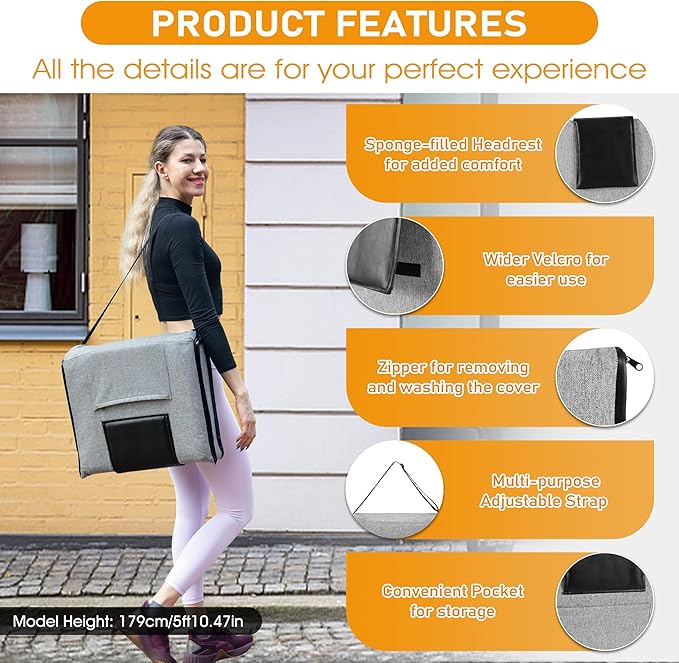 • 𝐖𝐈𝐓𝐇 𝐅𝐎𝐋𝐃𝐀𝐁𝐋𝐄 𝐅𝐔𝐍𝐂𝐓𝐈𝐎𝐍 - Considering the user's portability, we designed the foldable function. After folding the chair in half, you can easily store it in the corner of your home, or it can be fully unfolded and placed under the bed or sofa without taking up extra space. At the same time, the floor chair is equipped with adjustable shoulder strap, which is very convenient to carry outdoors to participate in various activities. The zippered pocket on the back is designed for easy storage.
