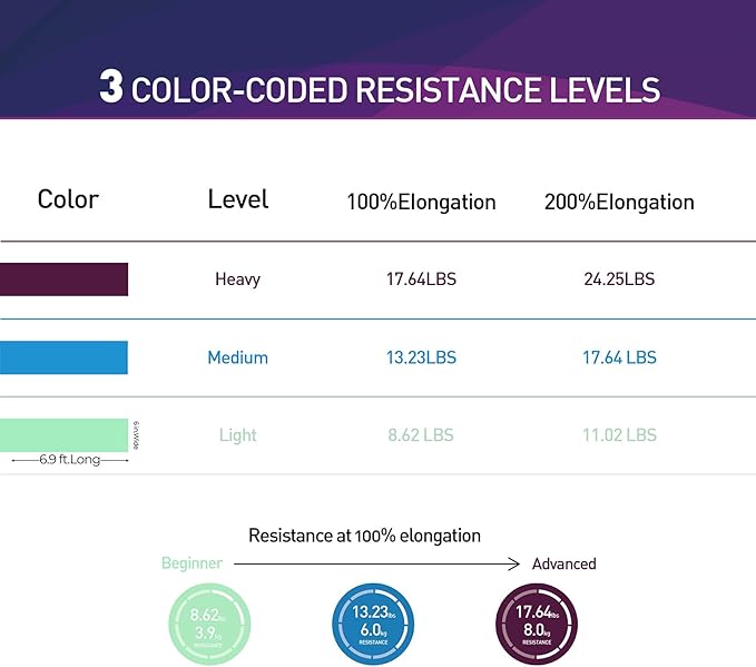 • 【Fun & Easy To Use】 The Bands are Perfect for Resistance Training and Rehabilitation, Which Provides Both Positive and Negative Force. You Can Take a Couple Wraps Around Your Hands for More Tension and a Secure Grip. or Just Tie a Knot, For Use as a Loop Band, and also You Can Double Them Up for Even More Resistance. The Bands are Vibrantly Color-Coded, Once You are Ready for a More Challenging workout, You can Move Up to The Next Color.