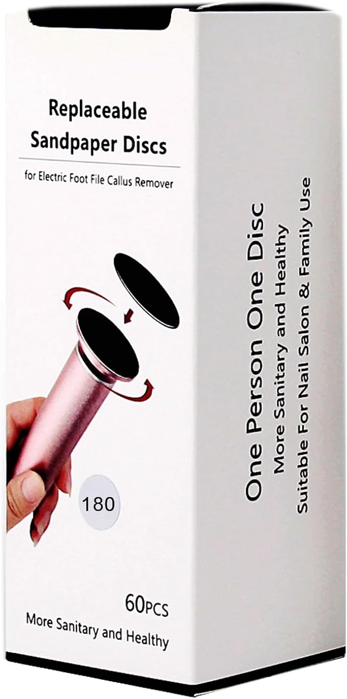 60pcs Replaceable Sandpaper Refill Discs for Electric Foot File Callus Remover Hard Dry Dead Skin Removal (Fine 180 Grit)