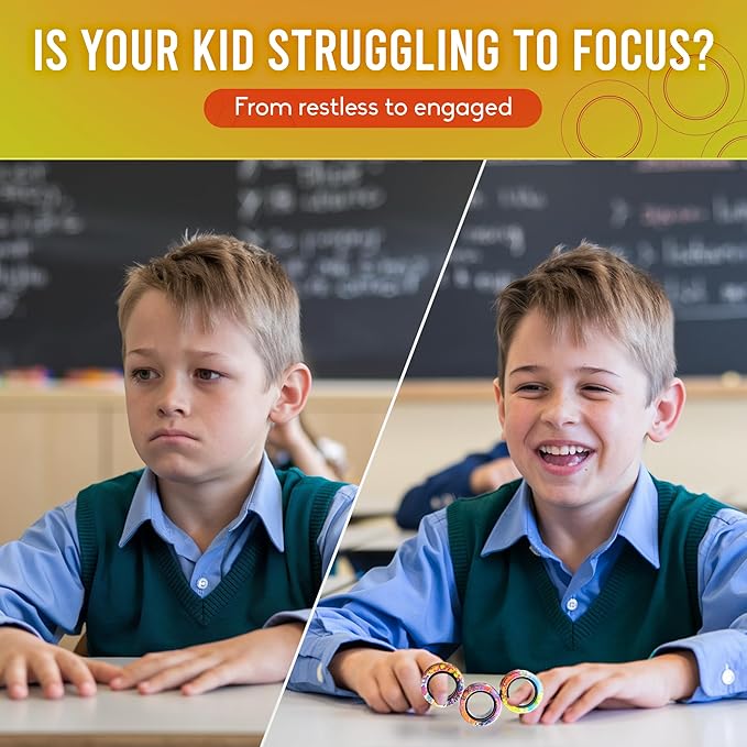 • Safe, Durable & High-Quality: Made from high-quality, BPA and toxin-free materials, our fidget rings are safe for both kids and adults. They are designed to withstand all-day play without losing their magnetic fidget ring charm.