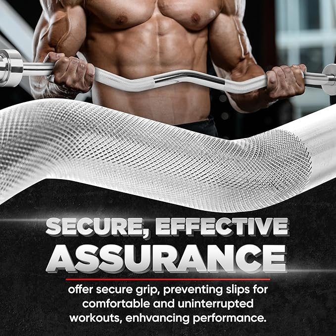 • NON SLIP KNURLED GRIPS: With firm diamond knurl handle, our curling barbell offers comfort & security, even with sweaty hands; Z-Curling design of our EZ barbell allows for natural & comfortable grip, increasing range of motion for deeper muscle, ideal for bicep curls, tricep extensions