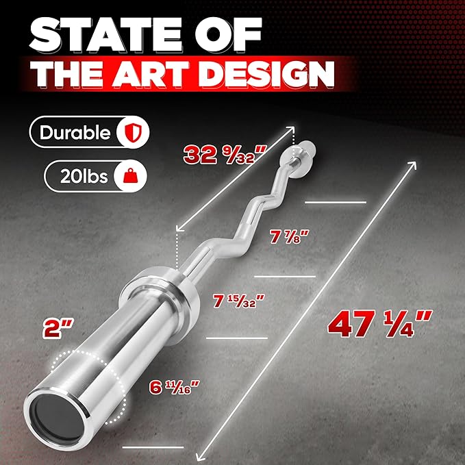 • SOLID & DURABLE EZ BAR: Crafted from stainless steel, our 2-inch Olympic EZ curl barbell is ideal for serious lifters looking for long-lasting reliability and performance; Our Olympic curling bar is built for intense workouts