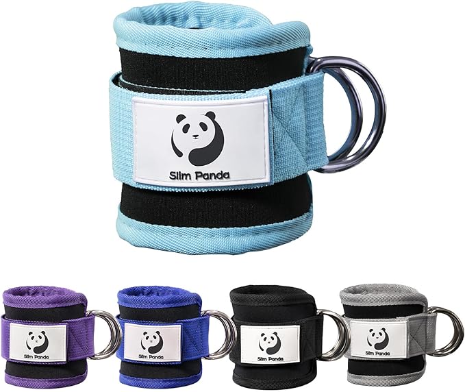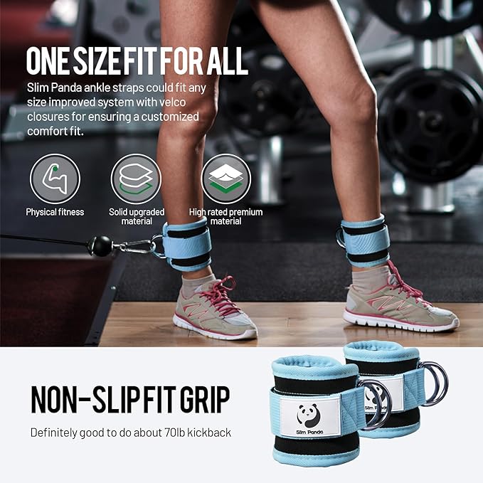 Slim Panda Ankle Strap for Cable Machine,Ankle Cuff for Kickbacks, Booty Hip Abductors,Glute Workouts, Leg Extensions, Curls for Men and Women, Adjustable with Double D-Rings