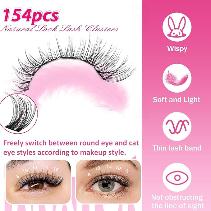 • This cost-effective diy lash extension kit includes all the accessories you need to wear lashes cluster, including 154 pcs of thick mink lash clusters in 5 different lengths, a lash bond and seal, and a pair of effort-saving and safe eyelash tweezers