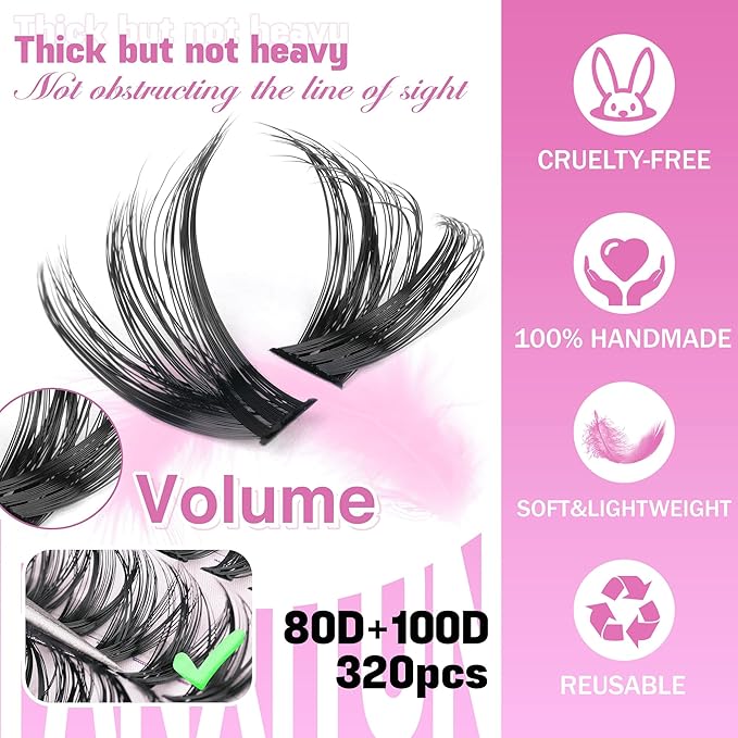 • Lash clusters are divided into two types: 80d and 100d, with slight differences in thickness; You can choose according to your own needs and choose different eyelash clusters for different occasions