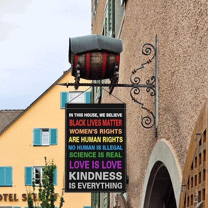 • Pride Garden Flag: Show your love, show your gay pride, love equality and freedom with this beautifully crafted in this house we believe garden flag.