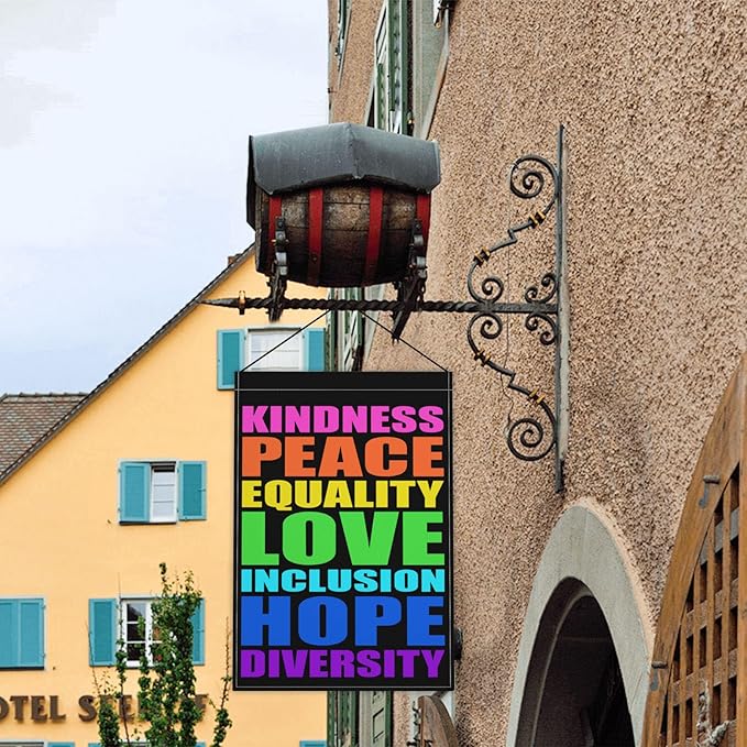 • Premium Material: The kindness peace equality love inclusion hope diversity garden flag is made of durable polyester, double-sided printed, 3-layer fabric, fine workmanship, double-stitched for durability.