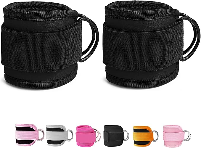 Fitness Ankle Straps for Cable Machines, 2 Pack Comfortable Adjustable Padded Ankle Wrist Cuffs, Kickback Glute Workouts for Men Women, D-Ring Leg Straps with Neoprene Padding