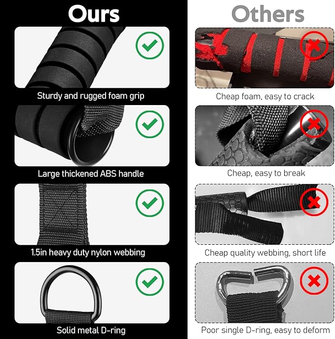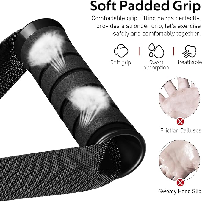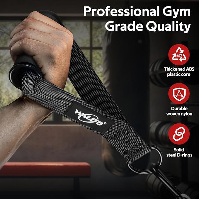 • Ultra Heavy Duty Exercise Handles - Engineered with unwavering strength and durability, our cable handles are built to withstand extremely 600lbs weights. Crafted from strong braided nylon straps, they are built to withstand rigorous workouts and offer long-lasting performance. Solid D-ring handles can maximize your workout performance, allowing you to unleash your full potential!