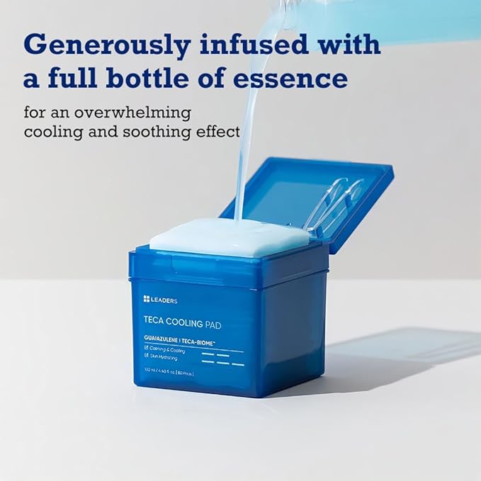 LEADERS Teca Cooling Toner Pad - Instant Relief for Dry, Overheated Skin | Vegan-Certified | Clinically Proven Efficacy | Korean Skincare 80 Pads x 130ml